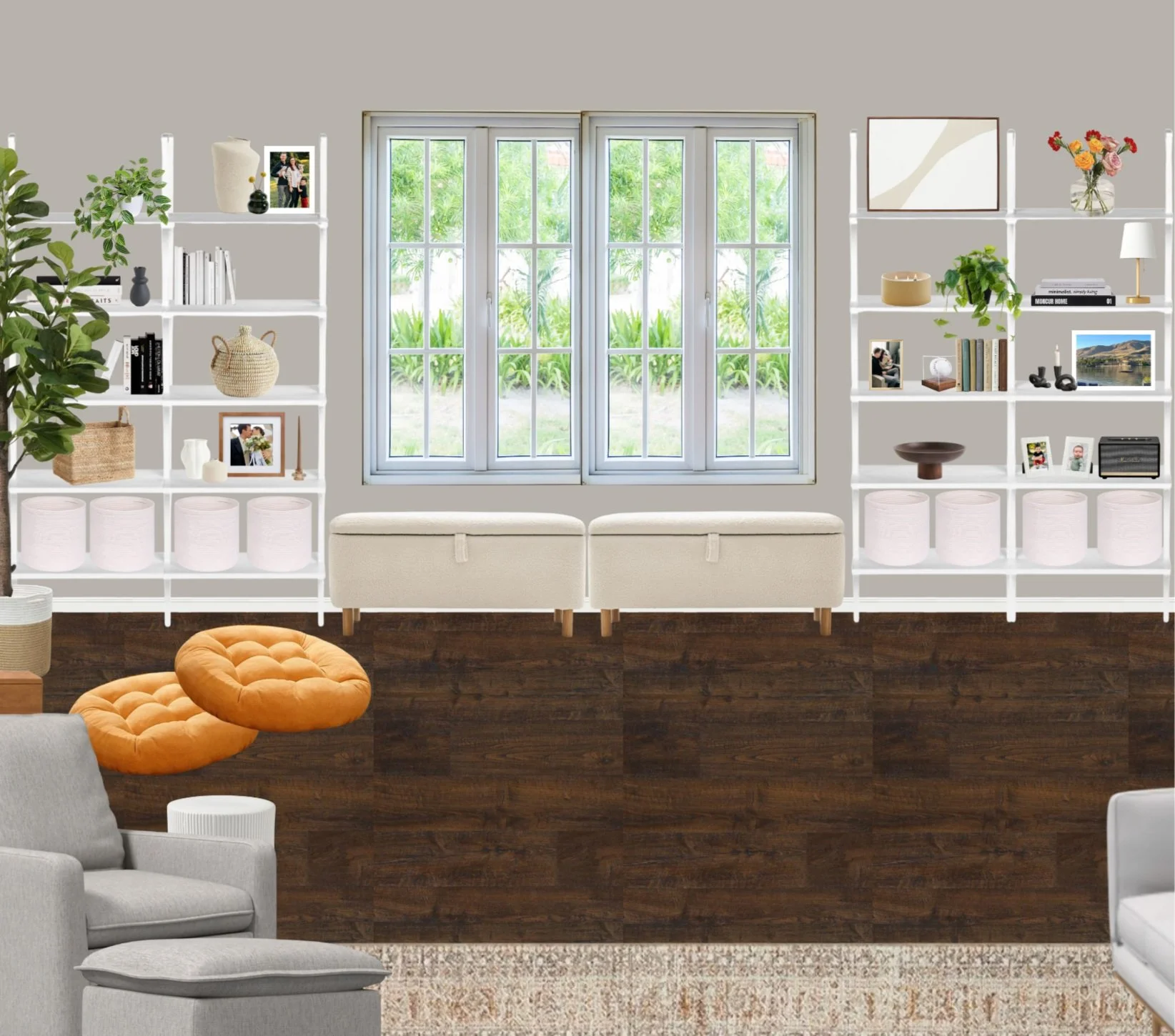 The goal? Transform a freshly remodeled living room into a cohesive, functional haven for the whole family. By blending budget-friendly finds with statement pieces, we achieved the transitional modern aesthetic. Soft edges, cozy rugs, plush textiles, and clever storage solutions were key players in crafting a space that caters to both kids and adults. And yes, we even squeezed in a diaper changing station and a work-from-home nook for the busy parents. Mission accomplished!